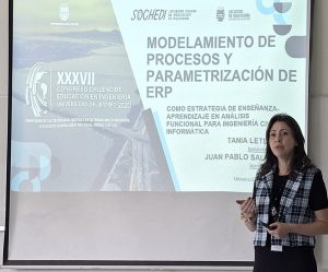 Asimismo, la académica Tania Letelier presentó el trabajo titulado “Modelamiento de procesos y parametrización de ERP como estrategia de enseñanza-aprendizaje en análisis funcional para ingeniería civil en informática”, desarrollado junto al académico Juan Pablo Salazar, ambos del Instituto de Informática de la UACh, el que muestra la experiencia replicada entre 2021 y 2024, en más de 100 estudiantes, quienes conocieron la forma de digitalizar procesos reales de organizaciones, sin necesidad de programar código.